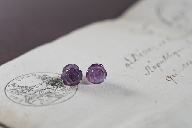 【耳元に咲く愛の守護石】2月誕生石・アメジスト薔薇14KGFスタッドピアス