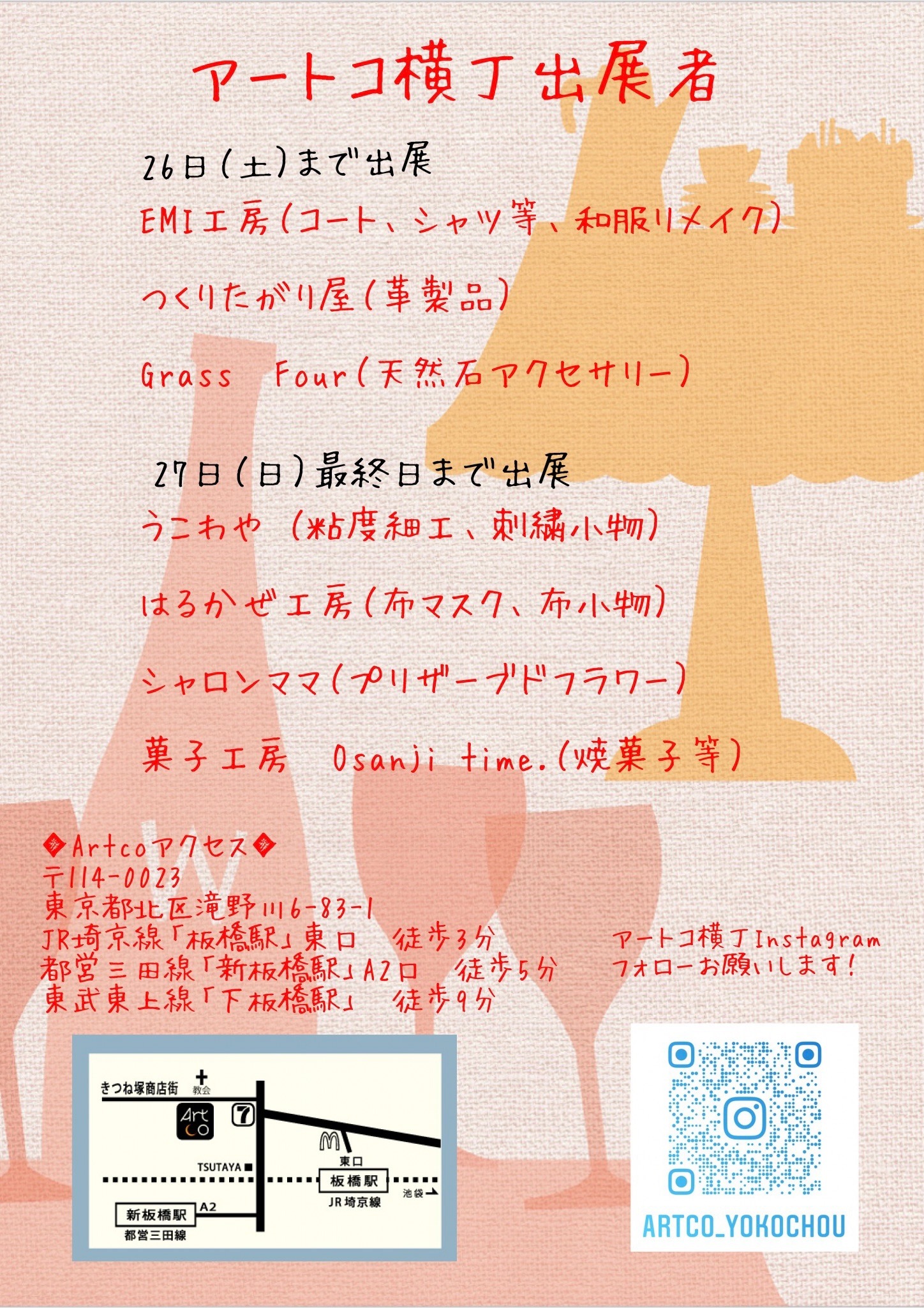 そしてGrass Fourが主催するアートコ横丁は25日で終了の予定でしたが、オーナーさまのご好意で本日まで開催しています。