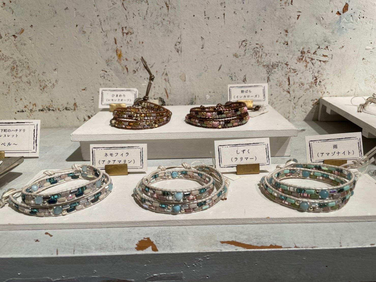 今回は昨年のラップブレスレットに加えてピアスも少しお持ちしました。