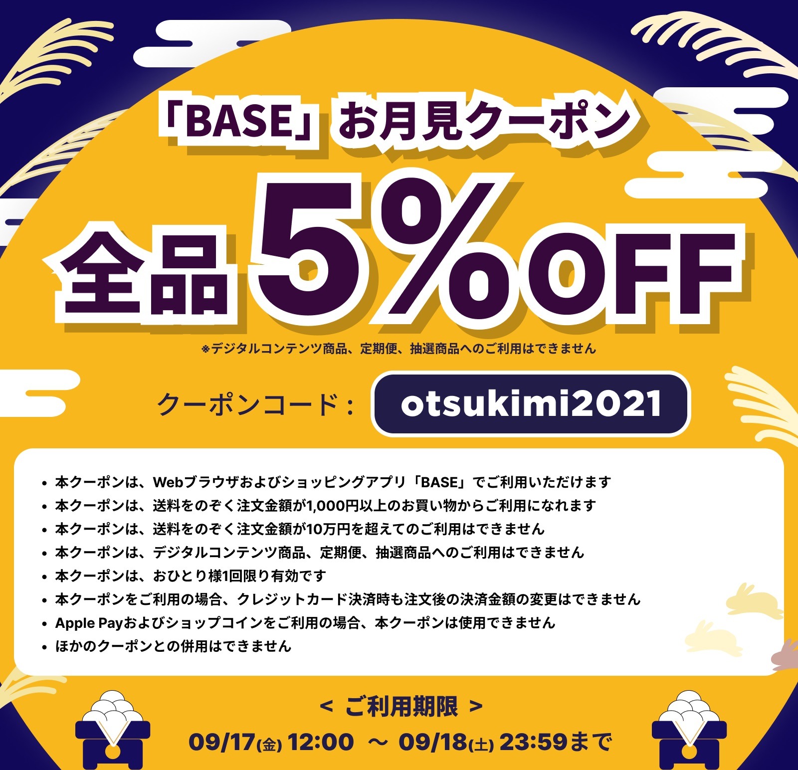既に始まっていますが,本日の12時よりBASEお月見クーポンが発行されています