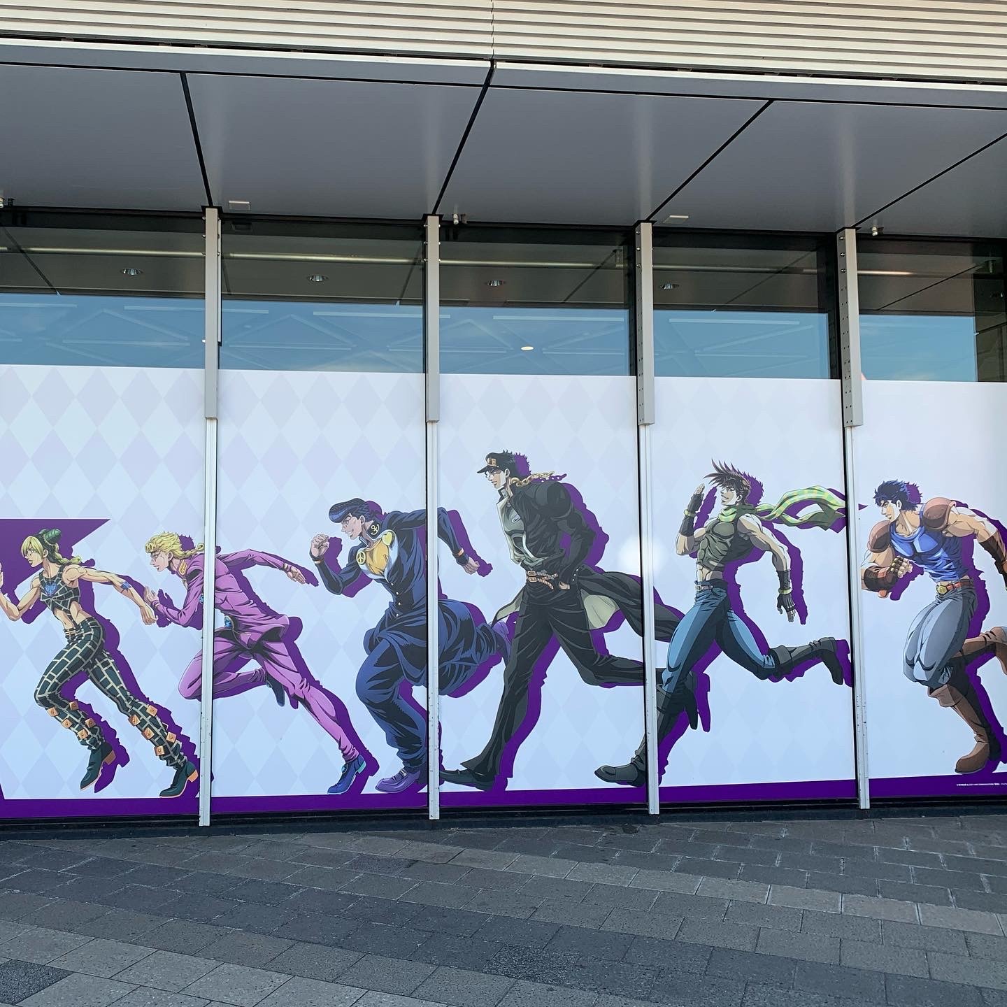 スカイツリーのメインエントランス横にあるジョジョのメインキャラクターのポスター