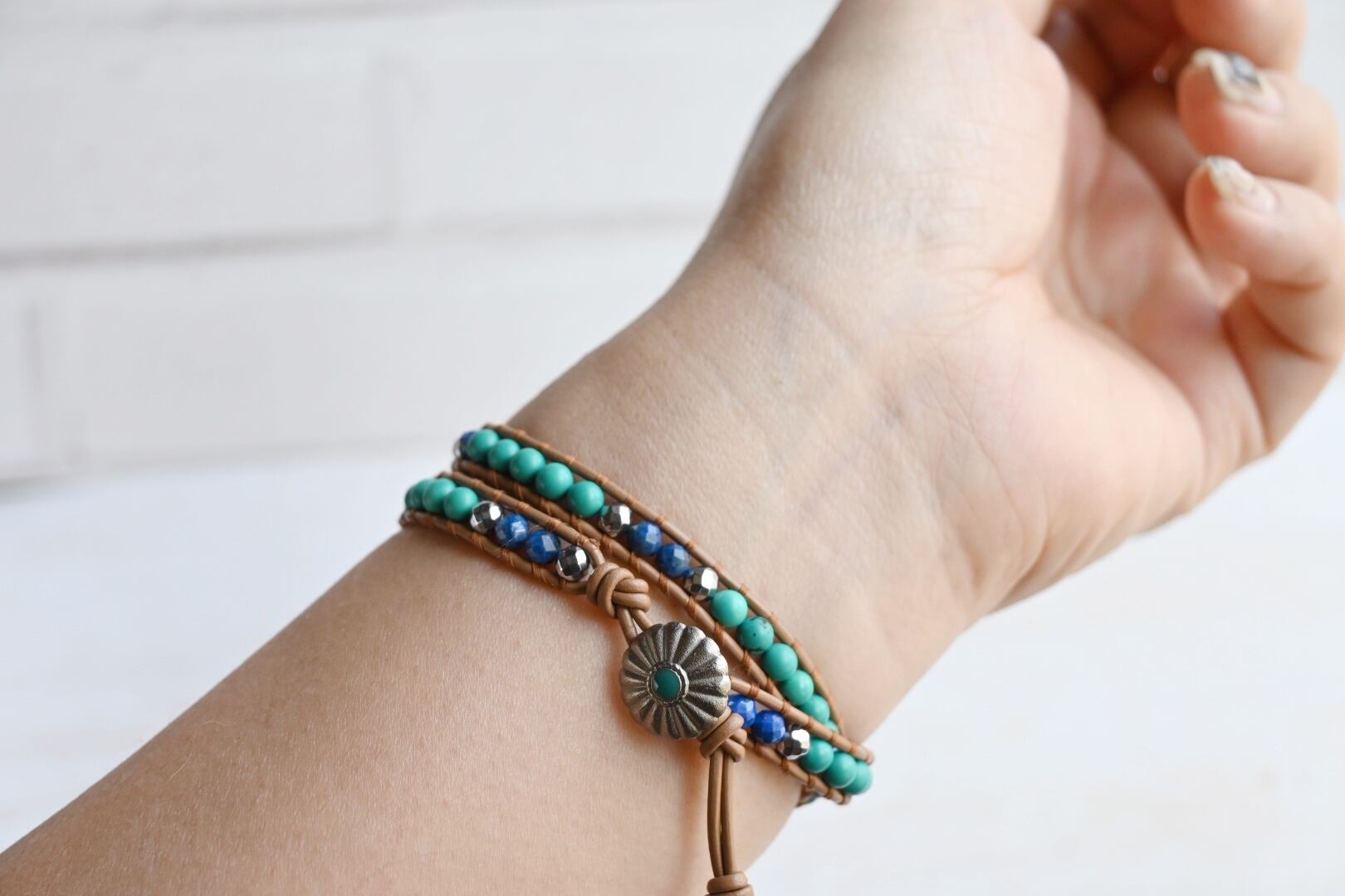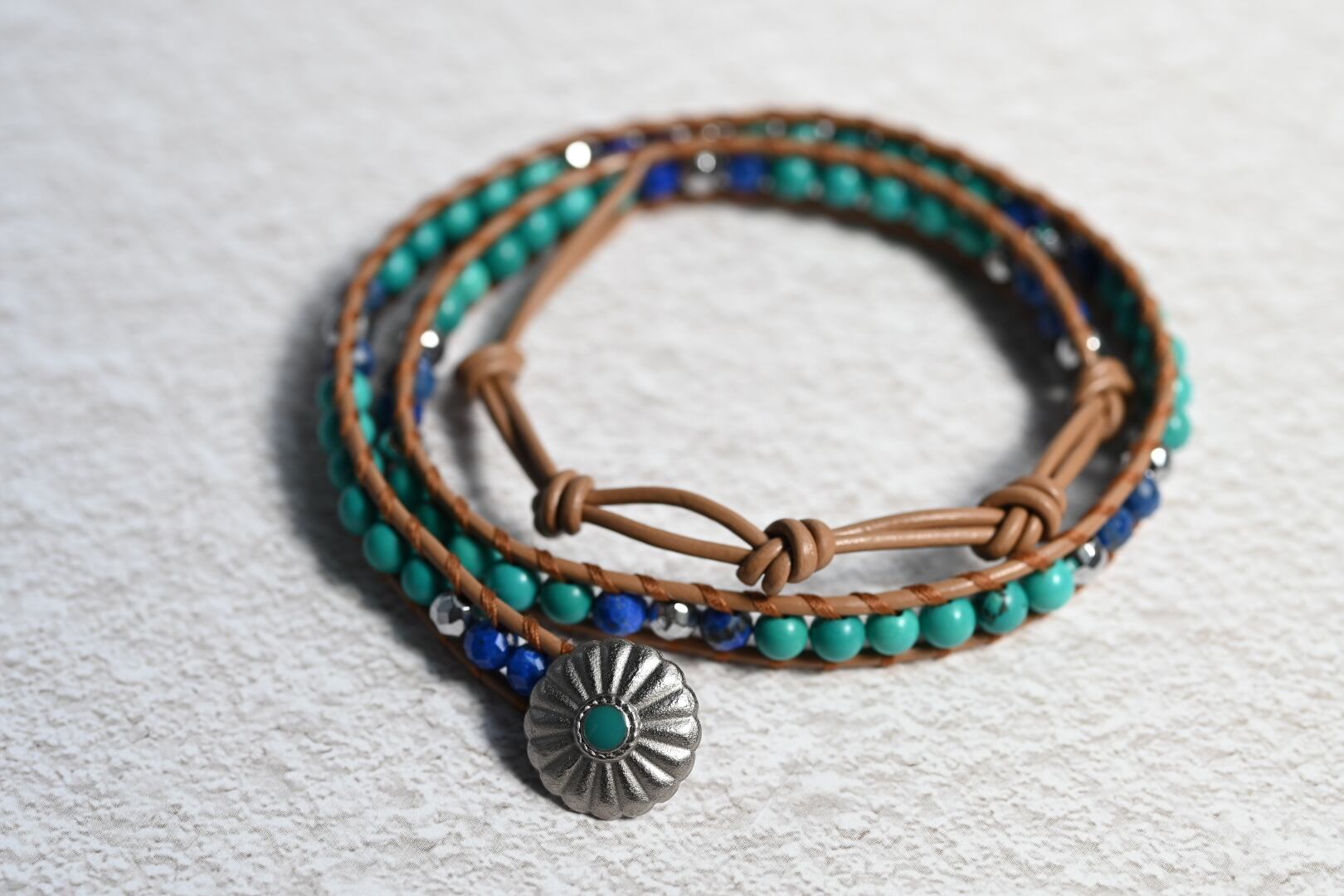 【12月誕生石】天然ターコイズ ストーンミックス2連ラップブレスレット~Pure Breeze Bracelet