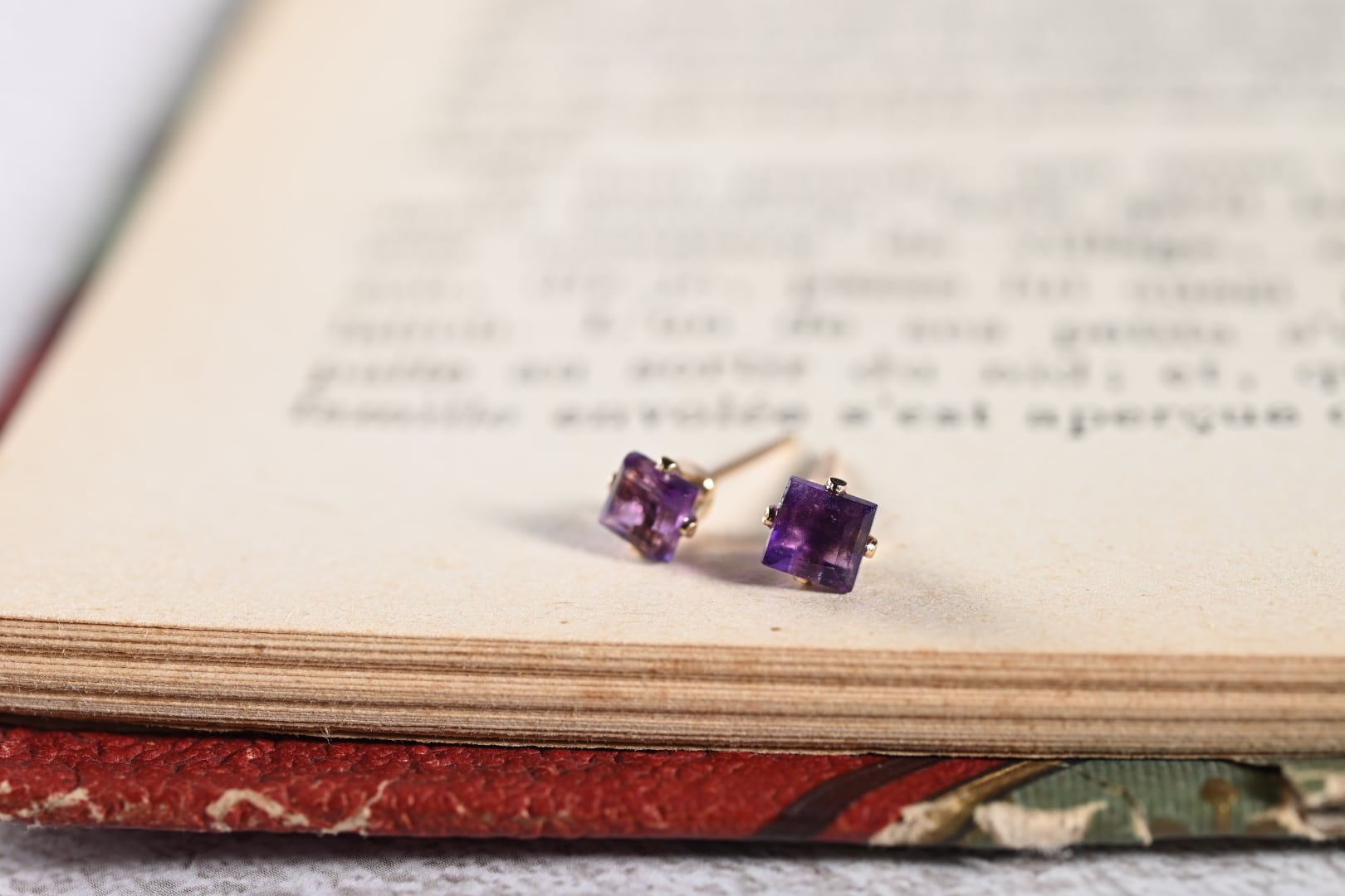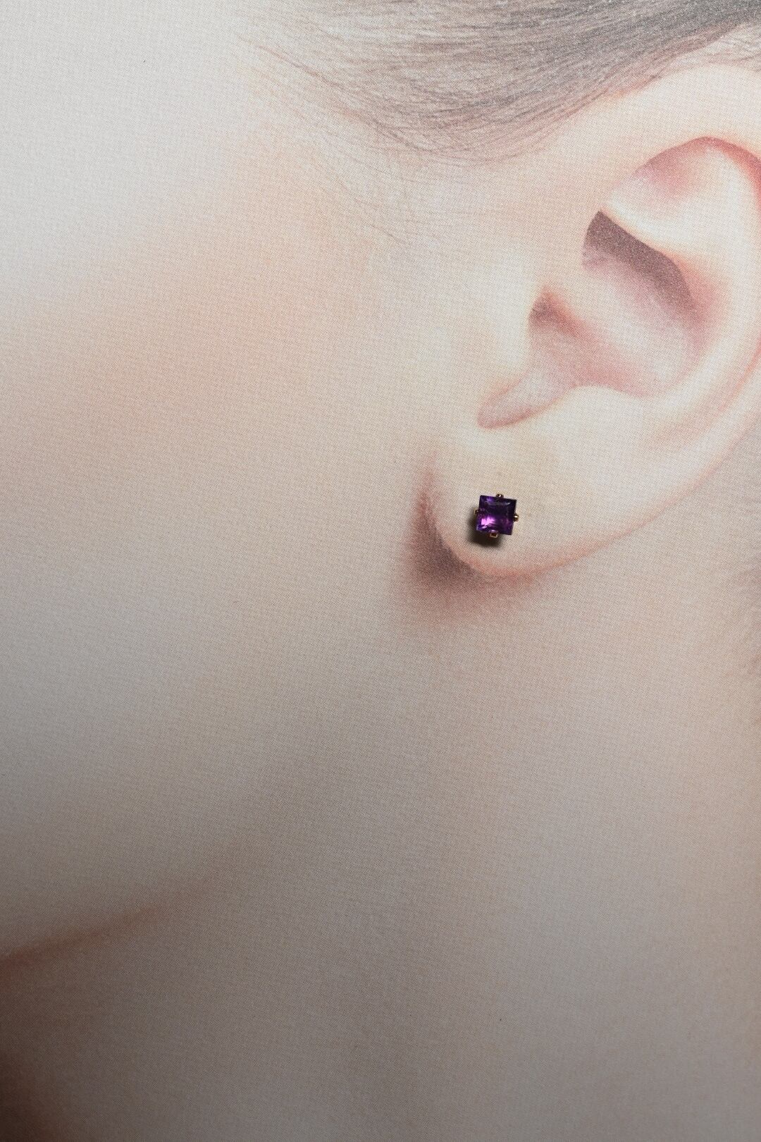 透明感あふれるアメジストを、端正なスクエアモチーフに閉じ込めました。