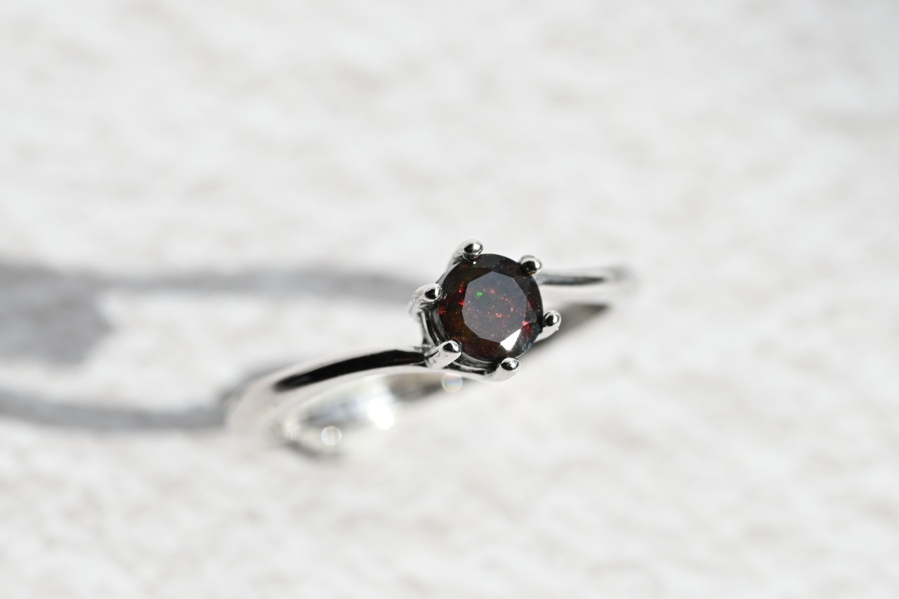 明るい色のオパールが「可憐」なら、このブラックオパールは「重厚」で「神秘的」。