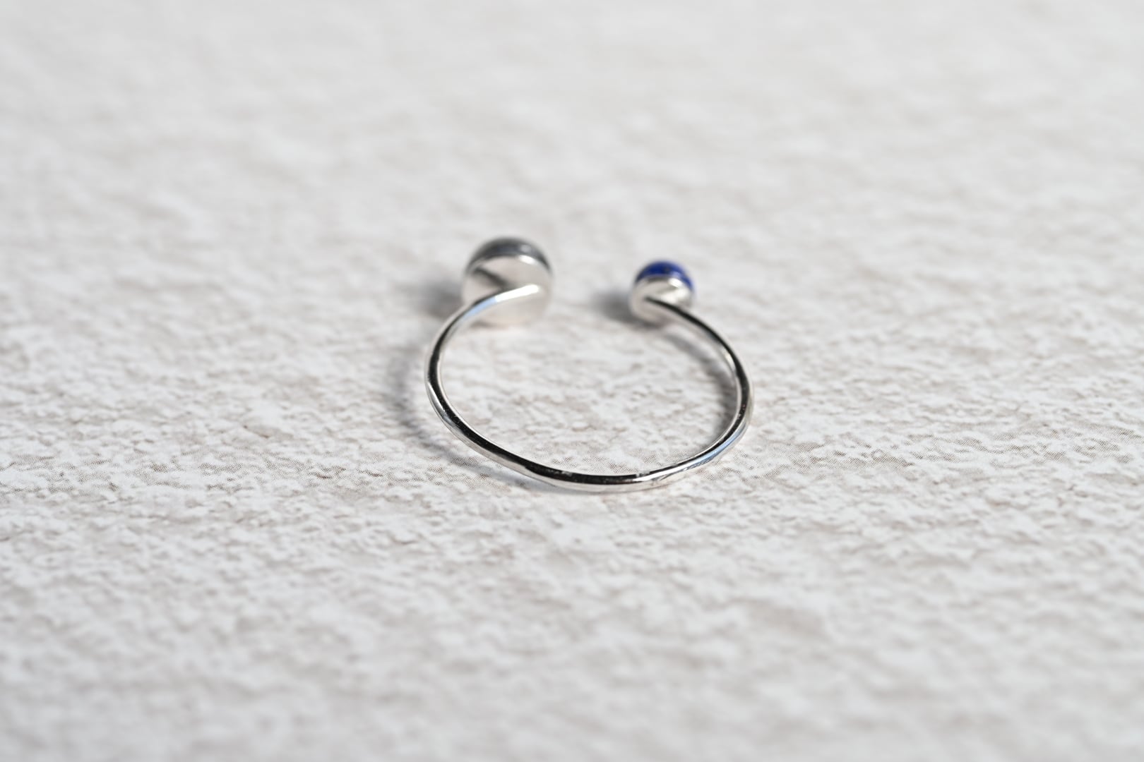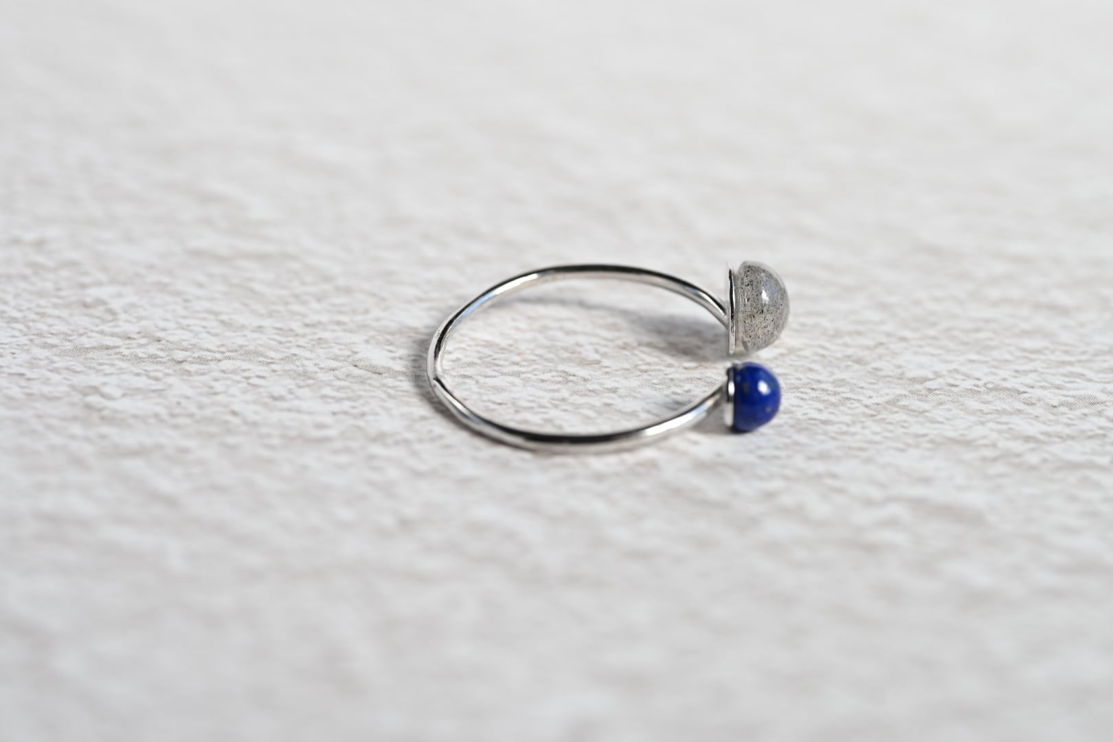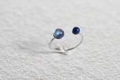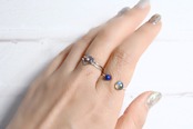 異なる表情を持つ2つの天然石を組み合わせた、繊細なフォークリング。