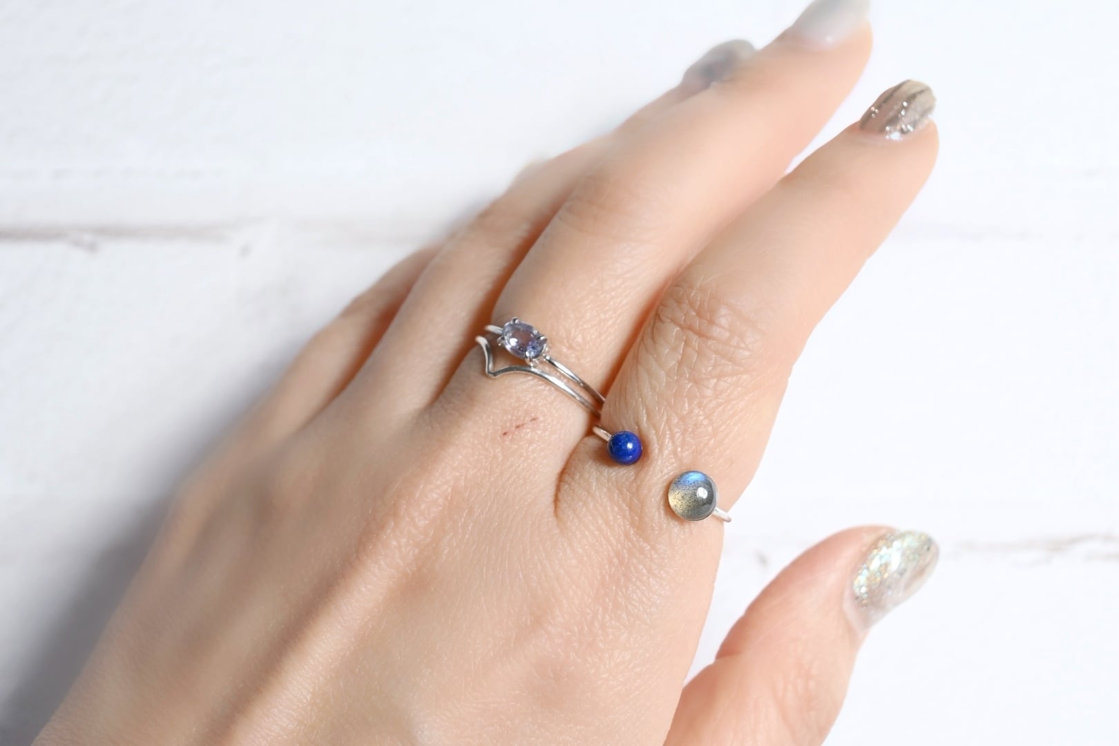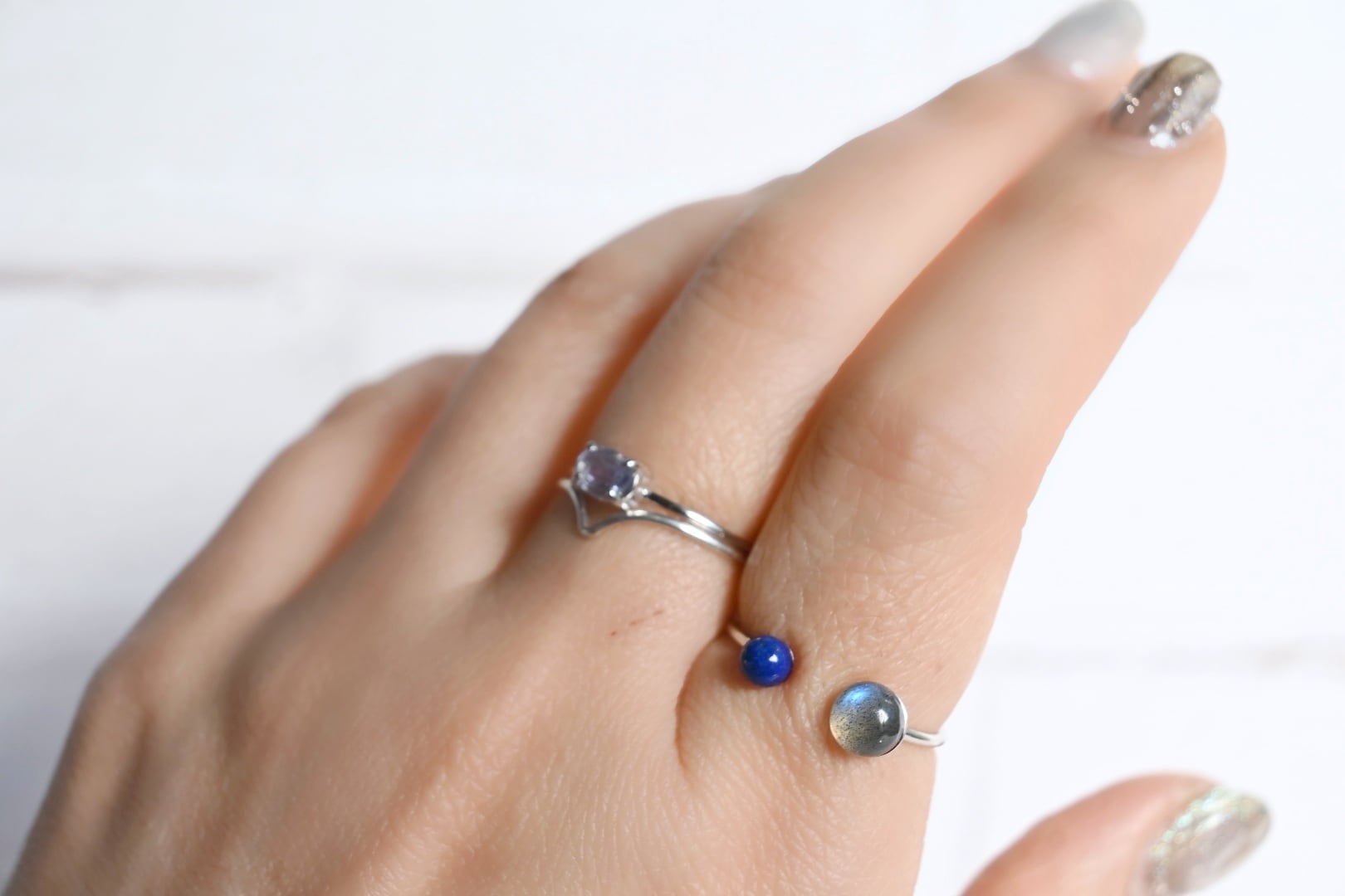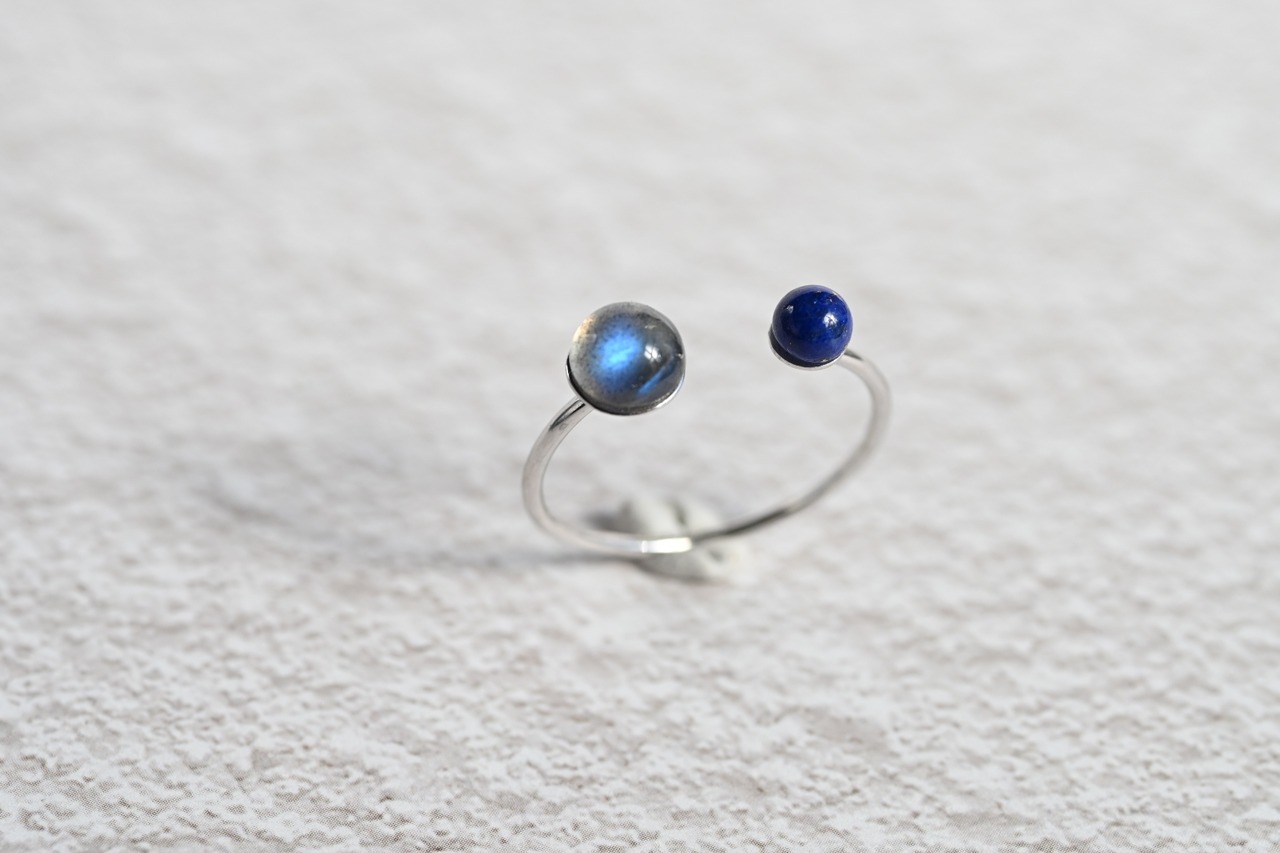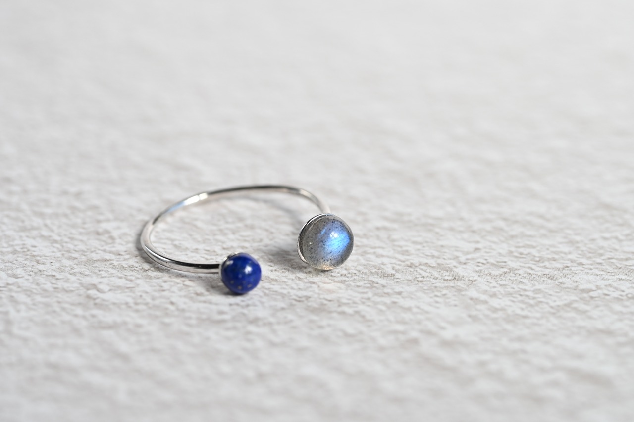 【静寂の中に秘めた強さ。凛とした手元を作る神秘の石】ラブラドライト×ラピスラズリ Silver925フォークリング