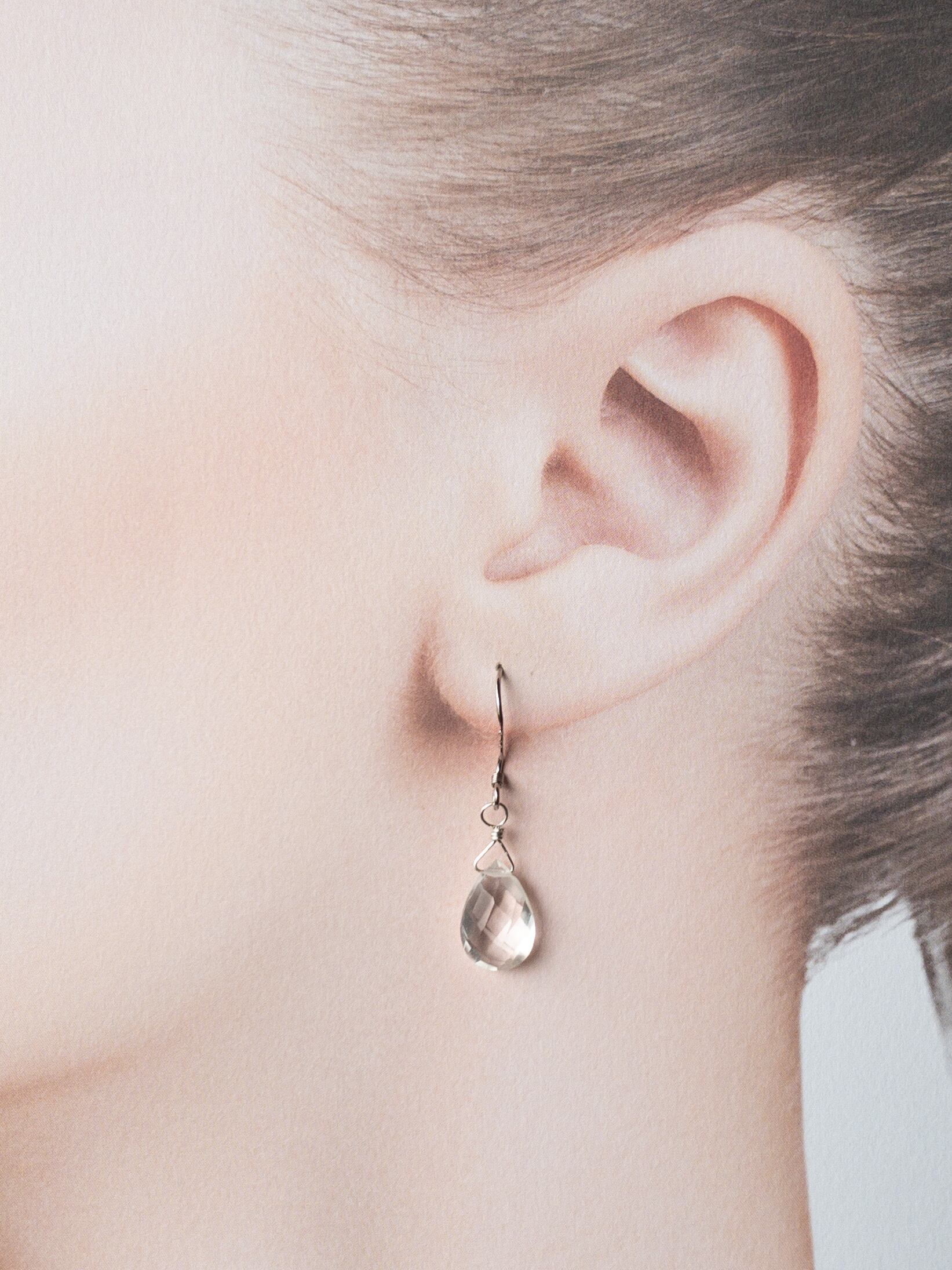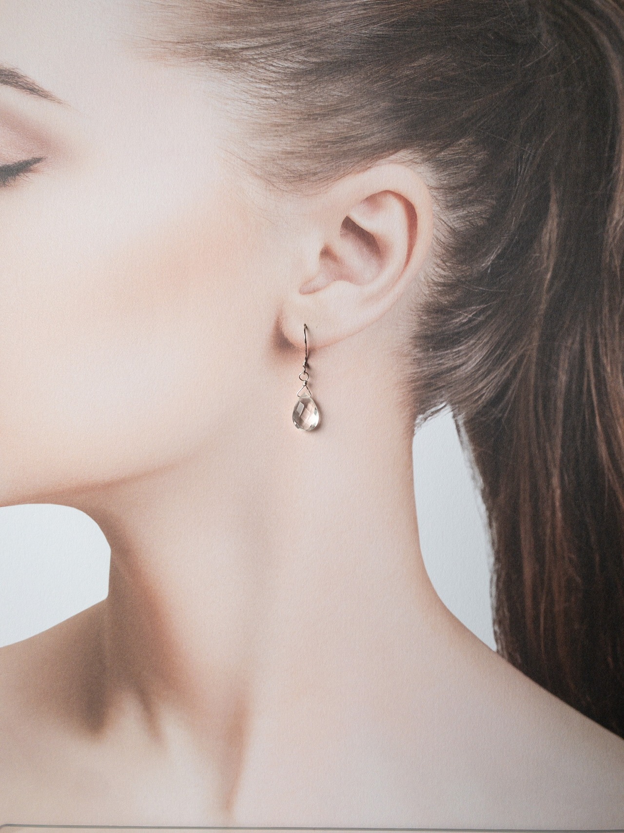 透明度が高いブリオレットカットのクリスタルは上品な輝きで耳元を揺らします。