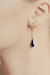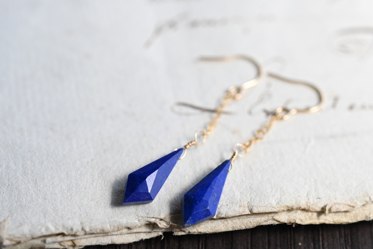 シャープなカットが施されたラピスラズリのモチーフは、動くたびに光を反射して、耳元で上品に輝きます。