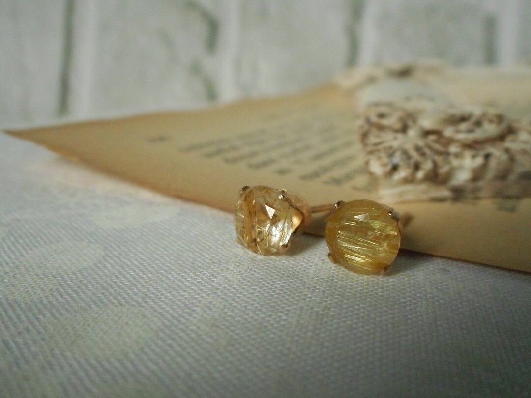 ルチルクォーツの大ぶり(6㎜)のスタッズピアス