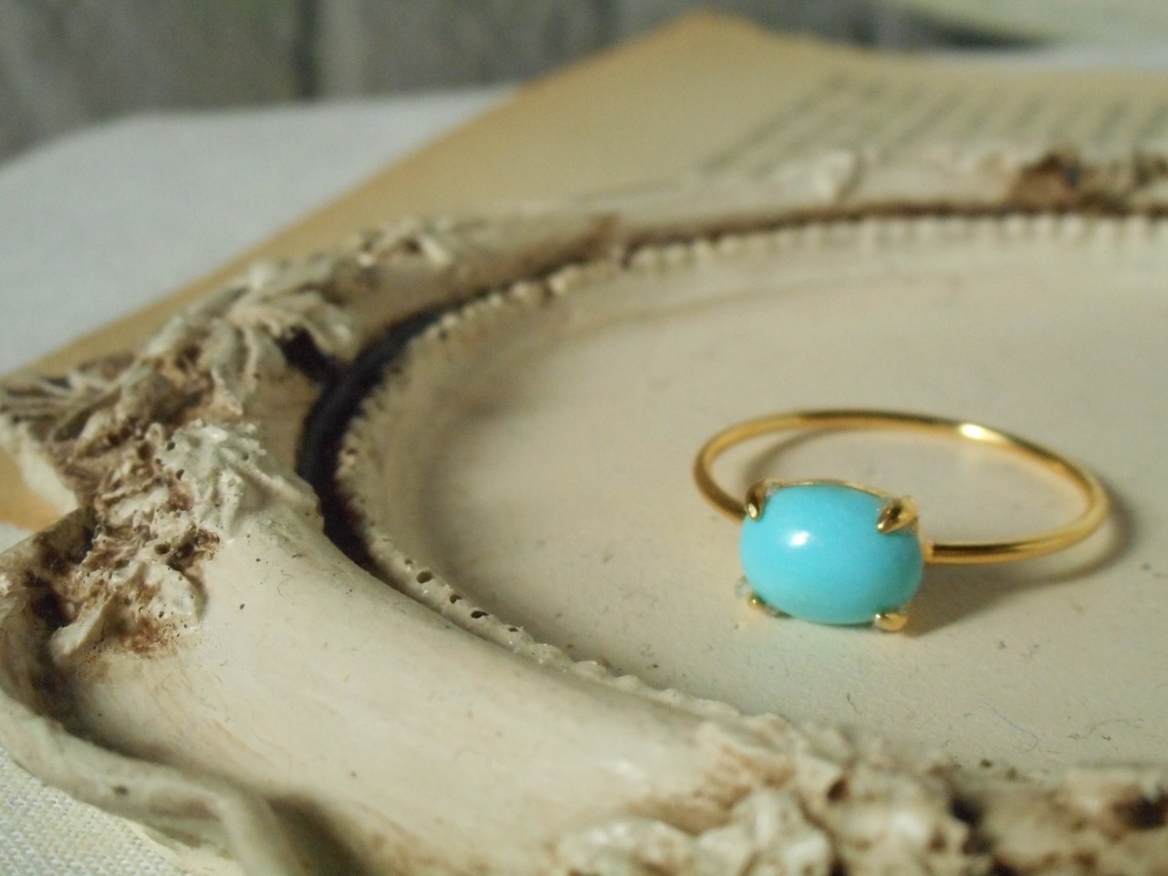 【12月誕生石】天然ターコイズ(キングマンターコイズ) オーバルカボションリング