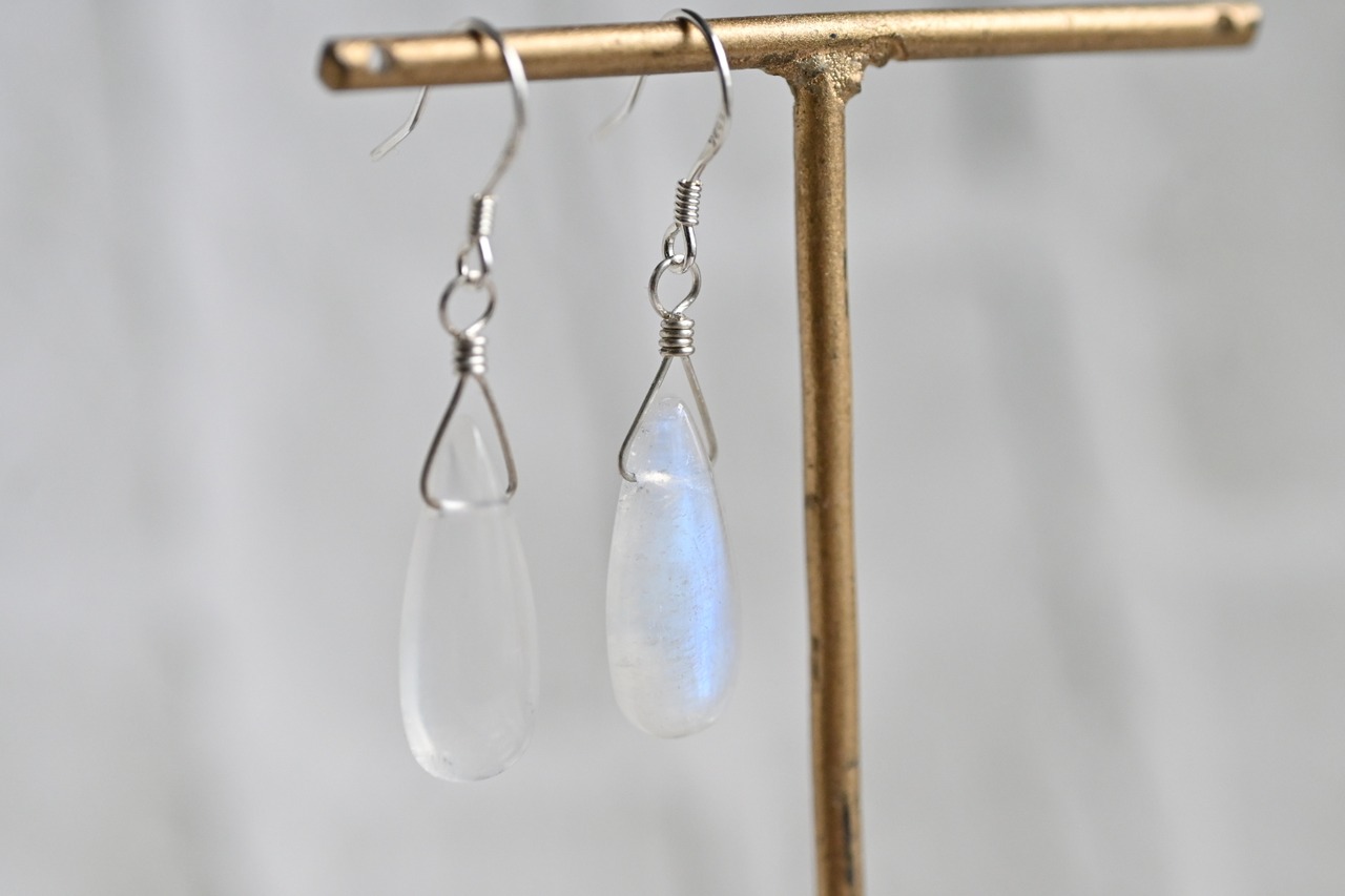 ブルームーンストーンは、神秘的な青い光を放つことで知られています。その美しい輝きは、まるで青い月のようです。 このピアスは、上品でありながらも個性的な存在感を放つため、どんなスタイルにも相性抜群です。デイリーコーディネートにはもちろん、特別な日にもぴったりです。