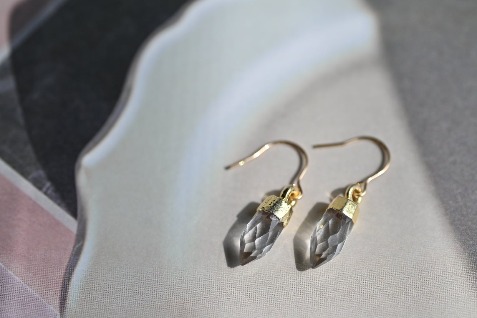 美しい4月誕生石のクォーツ(水晶)を使用したポイント14KGFフックピアスです。このピアスは、透明感のある水晶が輝くデザインで、シンプルながらもエレガントな印象を与えます。