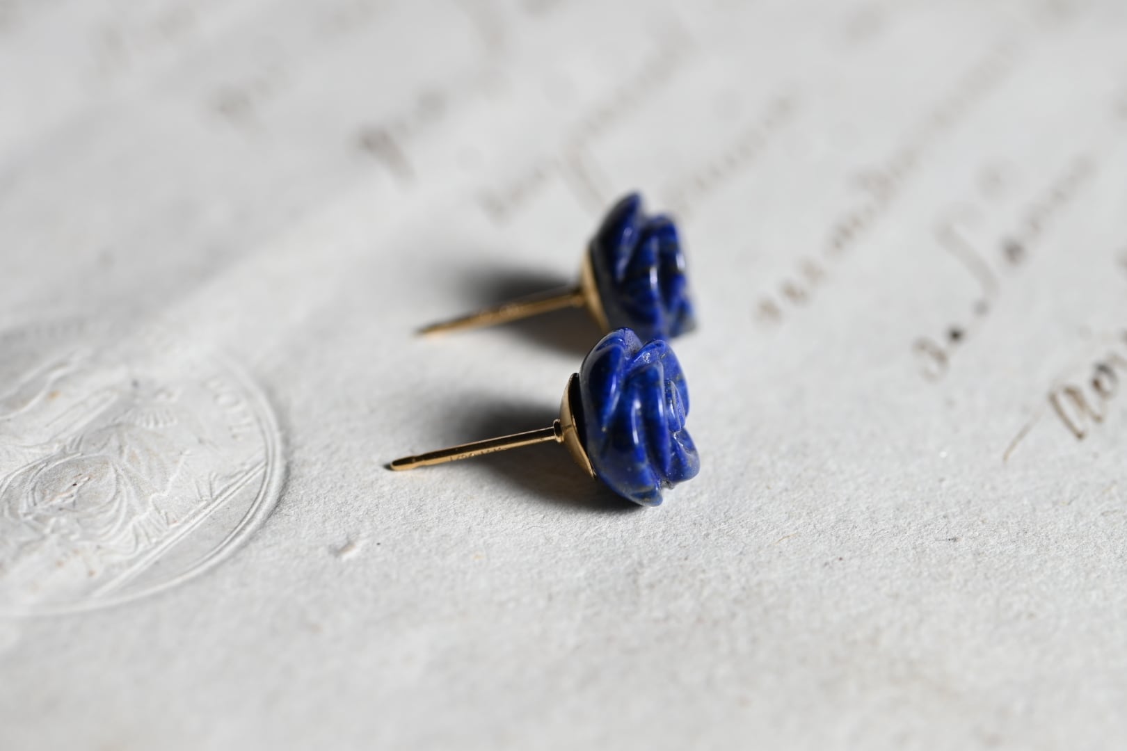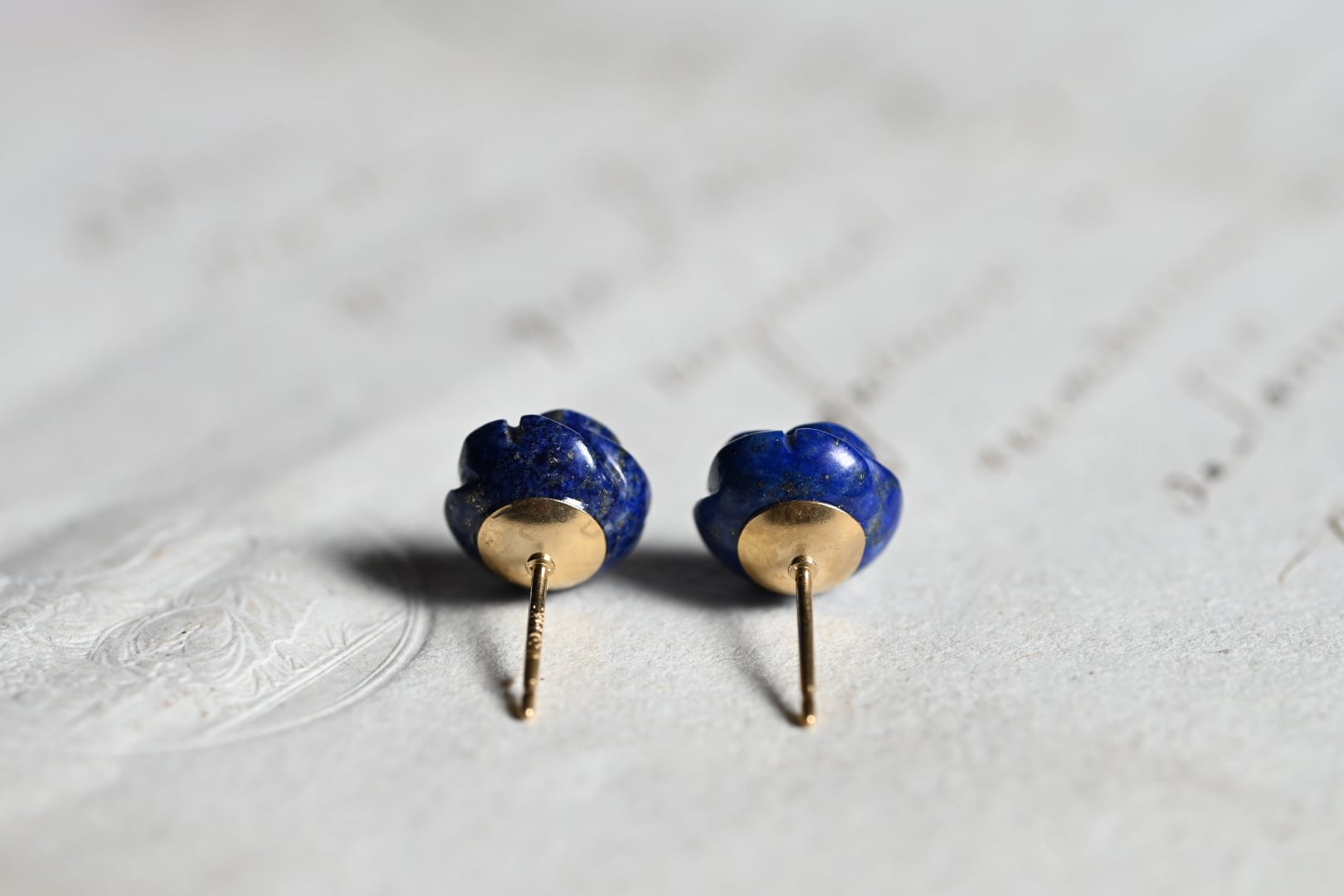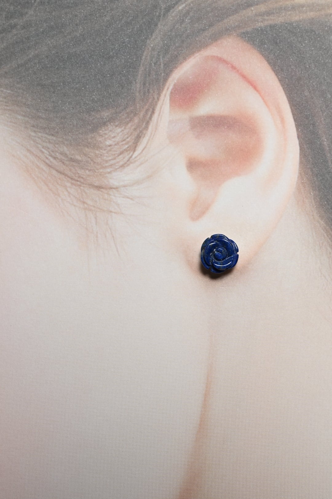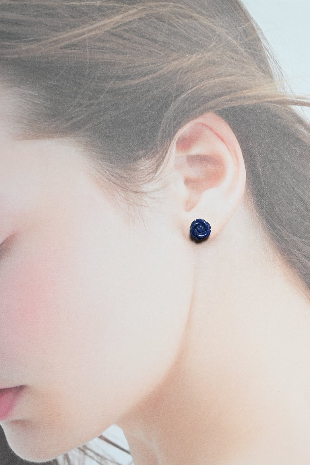 特徴は何といっても、この深く濃厚なウルトラマリンブルー。着色では決して出せない、天然石ならではの「本物の青」が、耳元に知的な気品を添えてくれます。