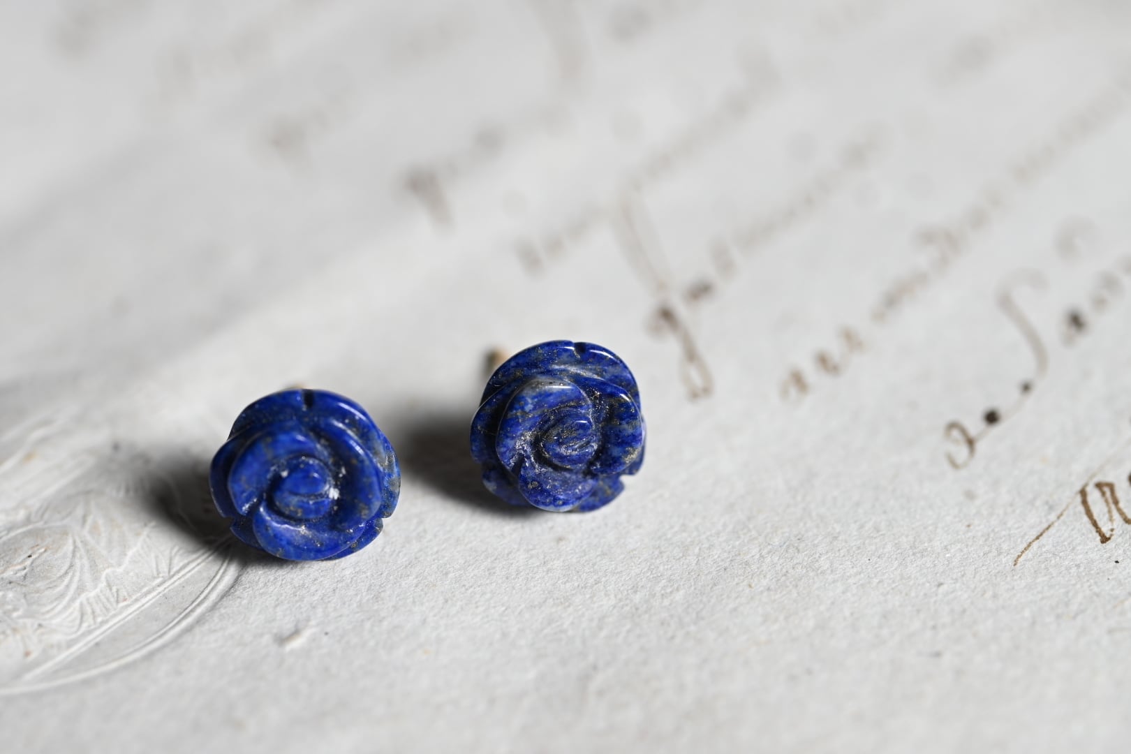 古くから「王の石」として愛されてきたラピスラズリは、幸福を招き、直感力を高める石と言い伝えられています。そんな格式高い石を薔薇の形に彫り上げることで、力強さの中にたおやかな女性らしさを宿した、当店でもリピーター様の絶えない人気のお品です。