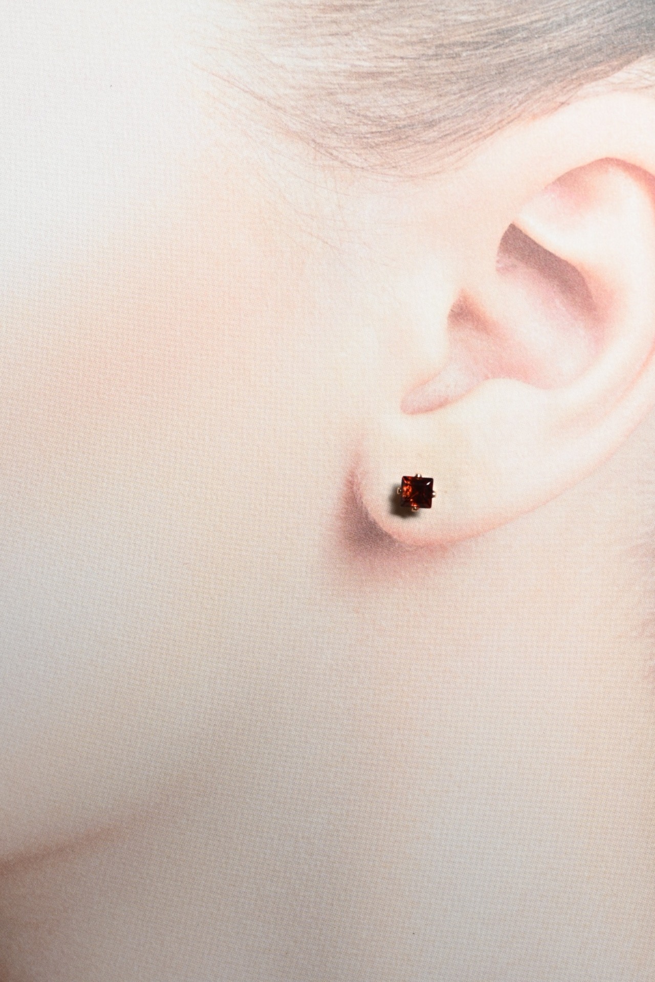 都会的なスクエア(正方形)フォルムで仕立てたスタッドピアスです。